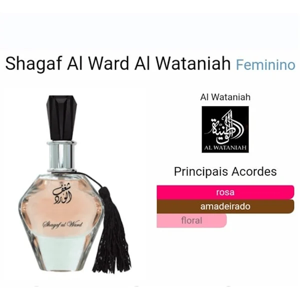 O Shagaf Al Ward de Al Wataniah é um perfume Árabe feminino com aroma de Âmbar Floral.